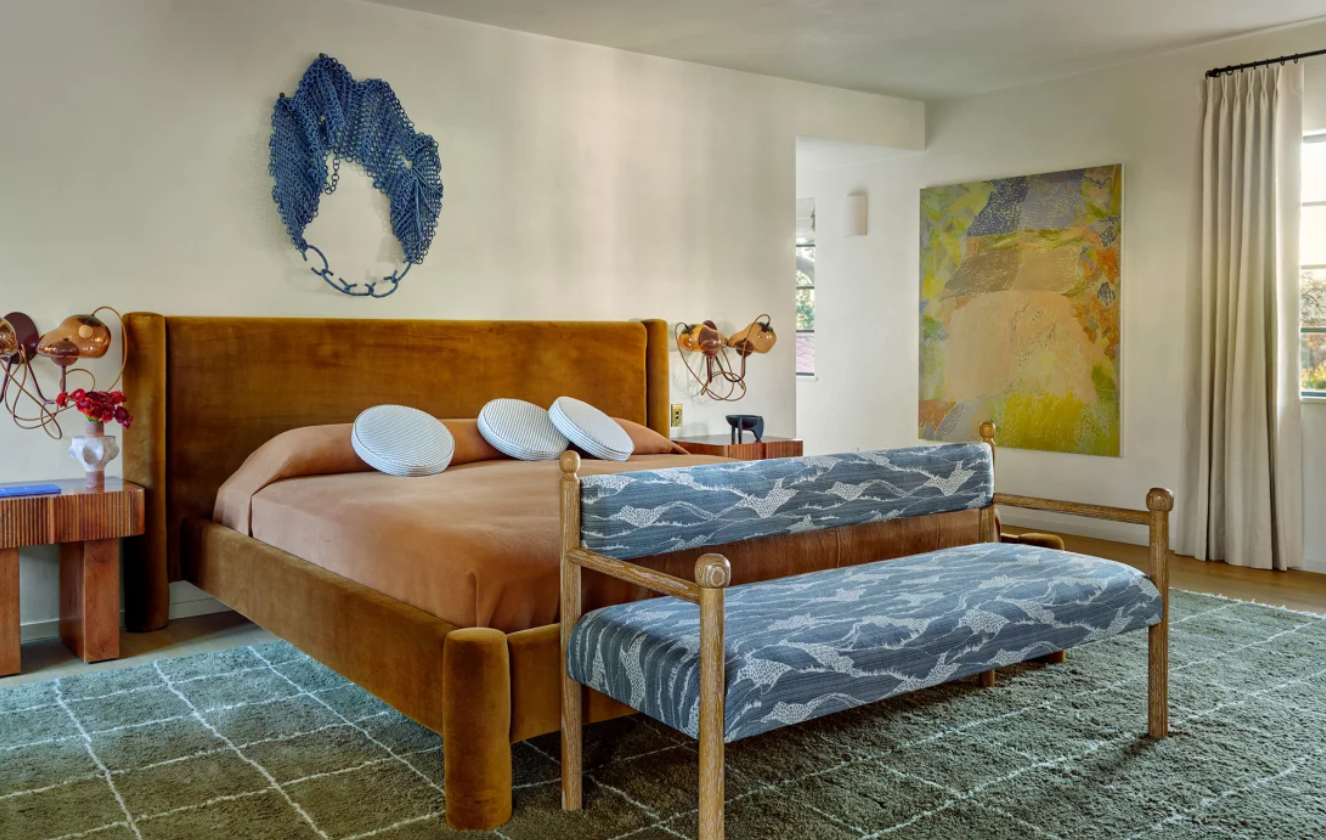 Moore recalled to AD the January night she and Goldsmith had to evacuate — as the Eaton fire neared their neighborhood, they drove their three children, three cats and dog through the wildfire-stricken area to a friend’s house. They initially believed their home had burned down, but the structure remained intact. They lost most of their belongings due to smoke damage, however, and Goldsmith’s entire music studio — including his collection of vintage instruments — were gone. They were lucky to be spared the worst, and Moore describes the shock of seeing their community for the first time in the wake of the fires.
